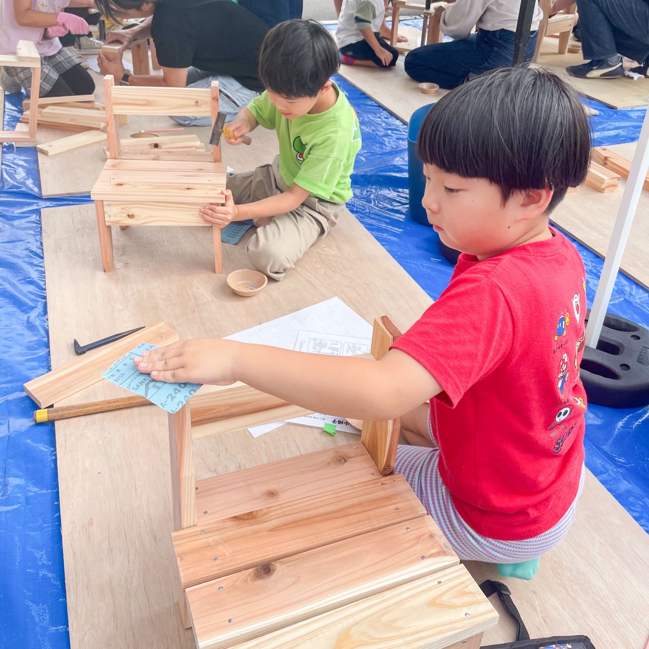 トンカチ(げんのう)を初めて使うお子様も参加されて、スタッフがサポートしながら無事に椅子を完成させていきました。
