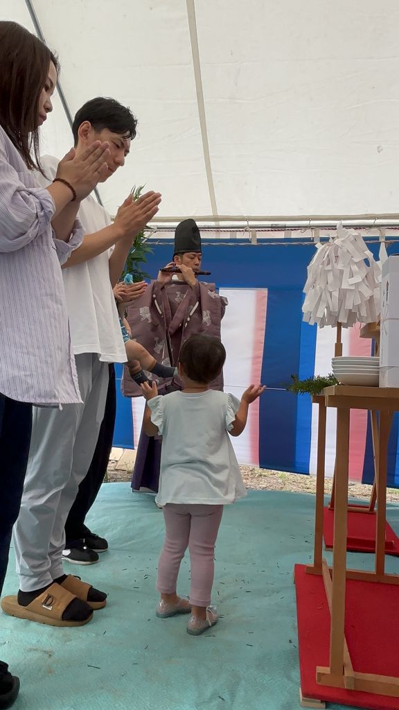 その後、直会で神様へのお供えを皆でいただいて、工事の無事を祈りました。無事に地鎮祭を終えることで、気持ち的にも安心しますよね✨