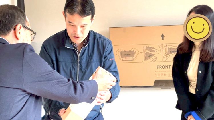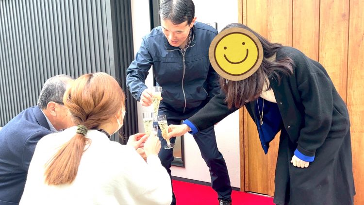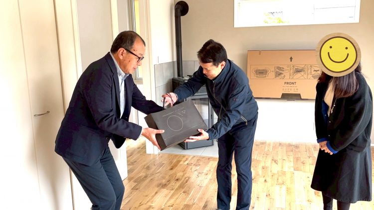 木楽ホームからお祝いの品をお渡ししたところ、O様からもお気遣いいただきました💐