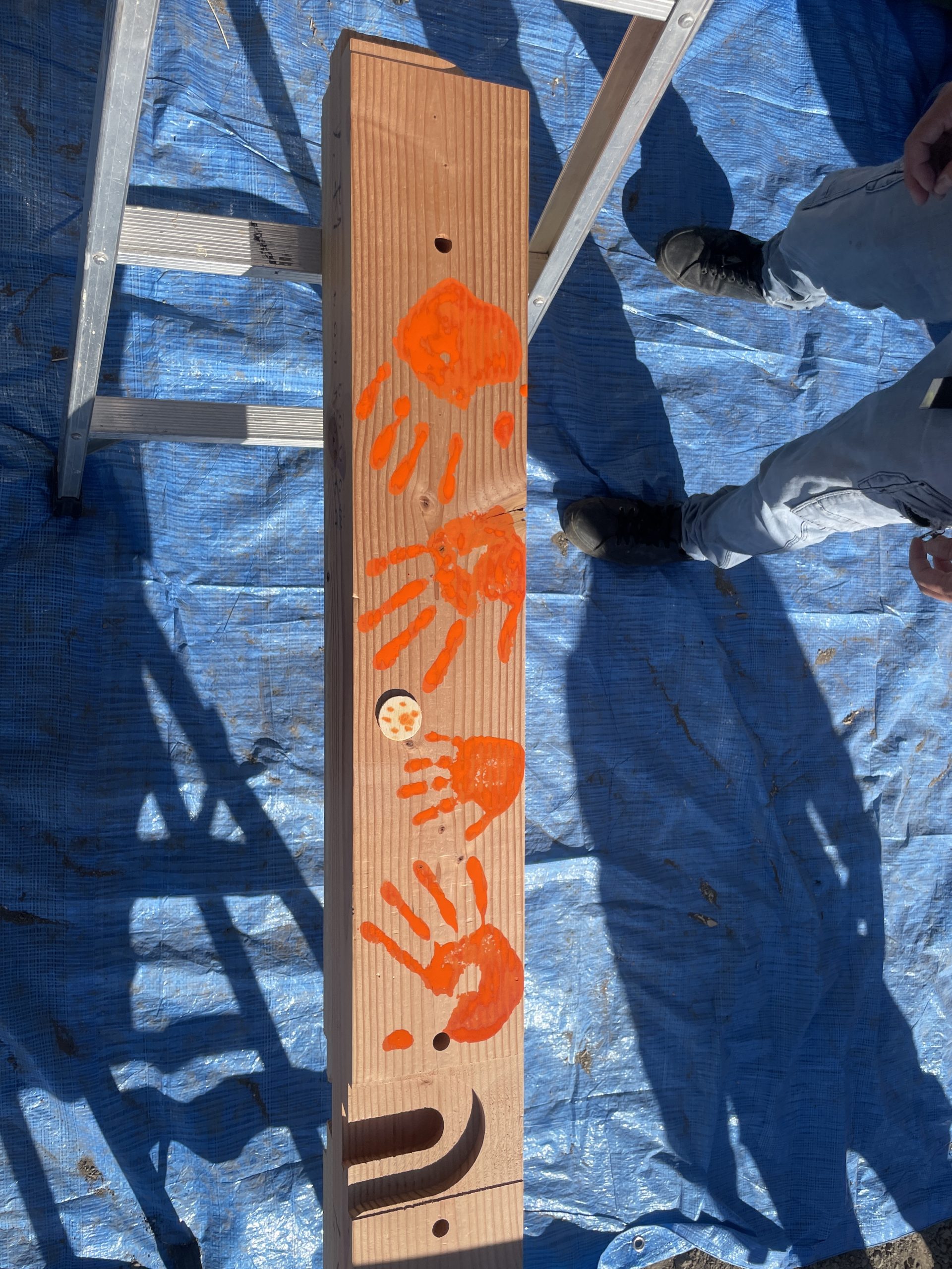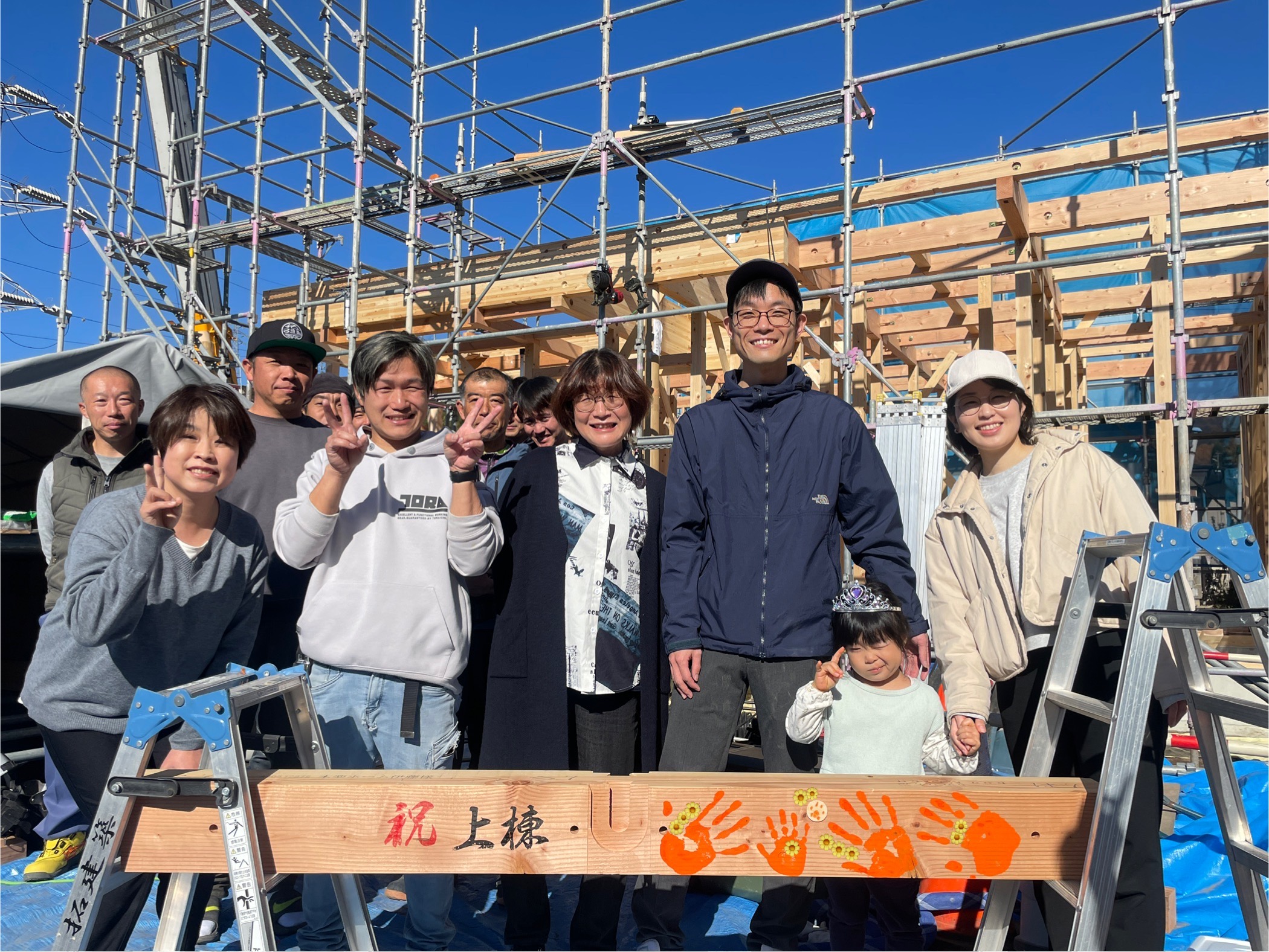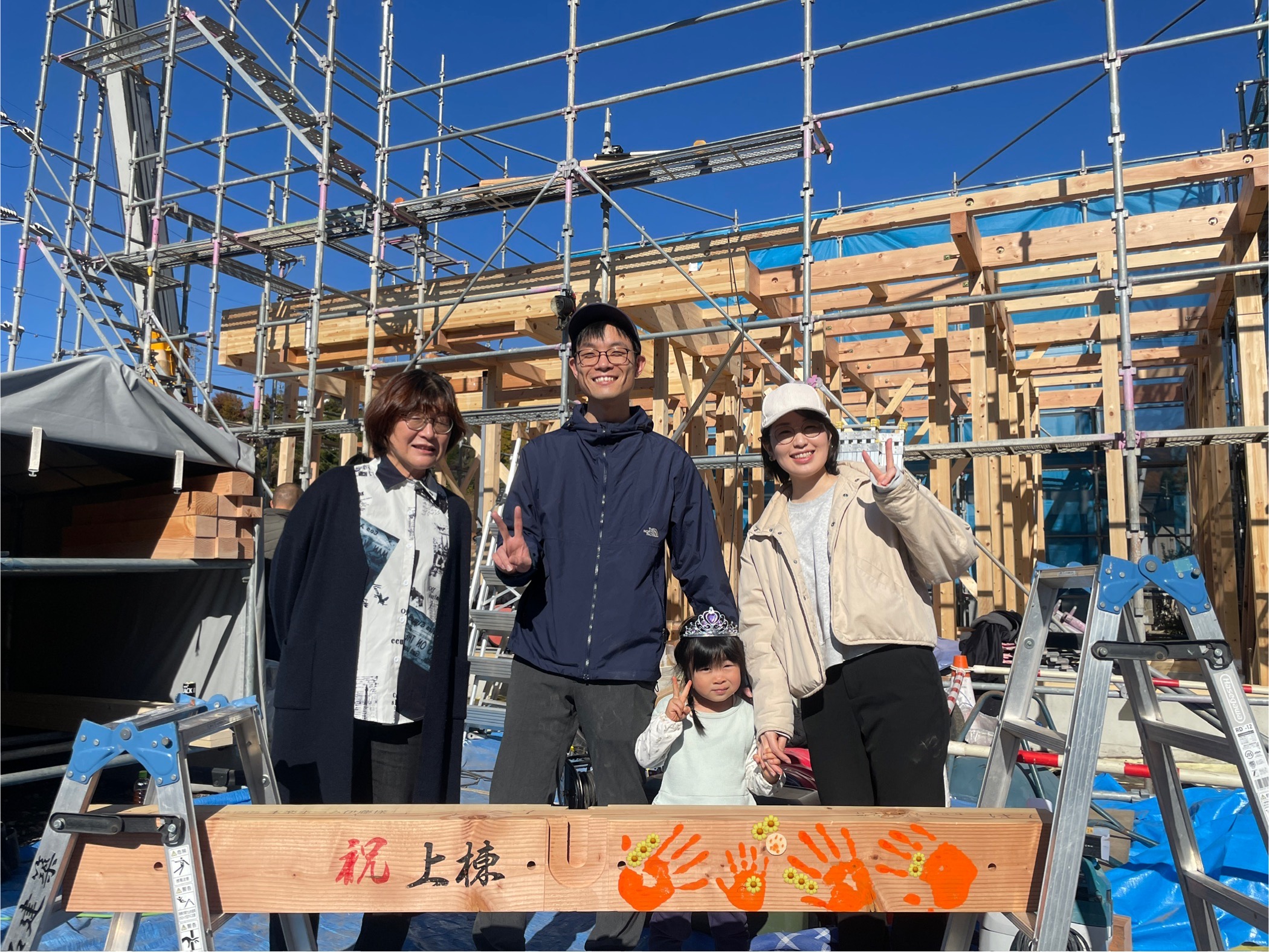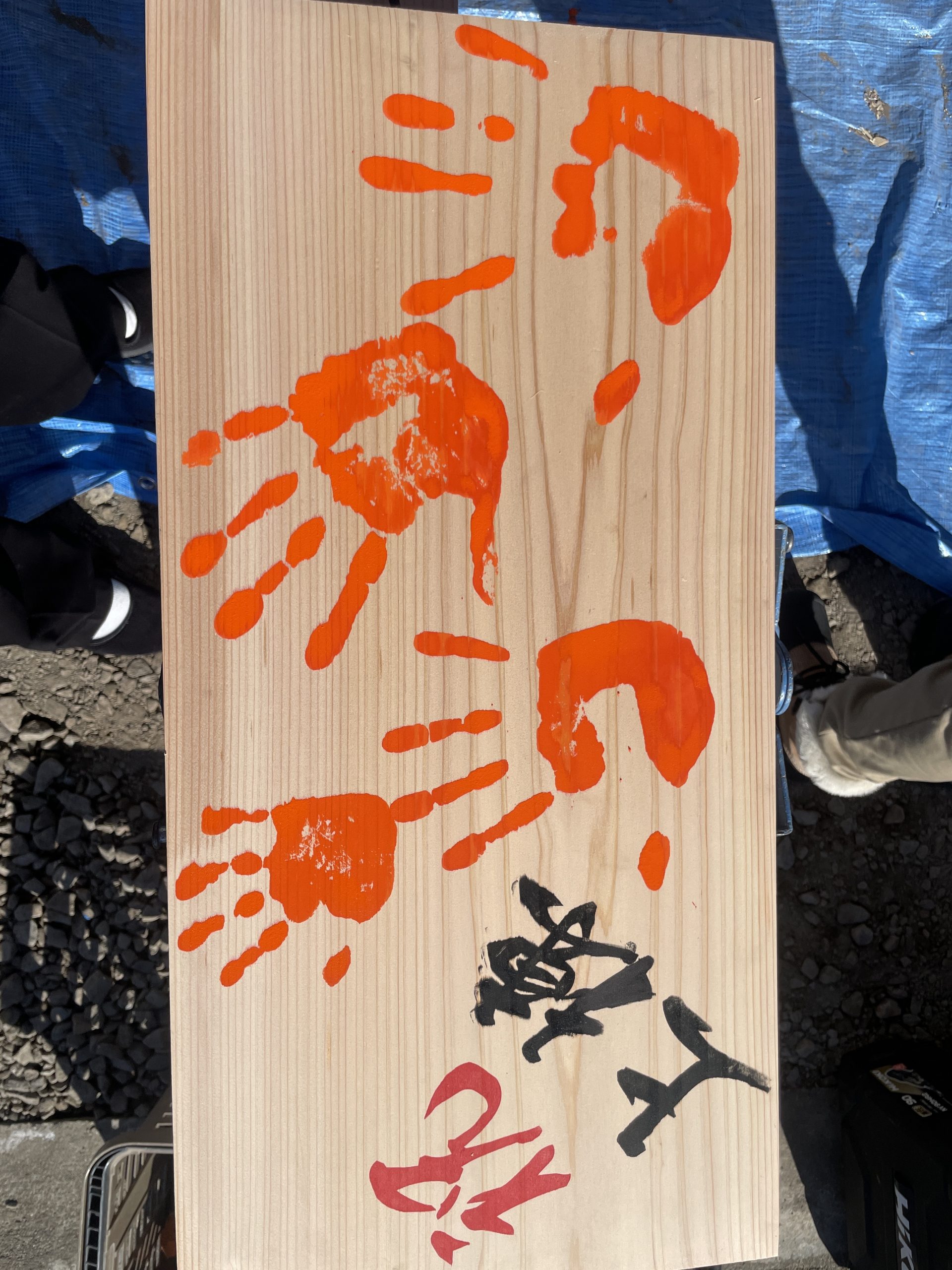 上棟と重なり、職人さんの見守る中温かな手形式でした。
