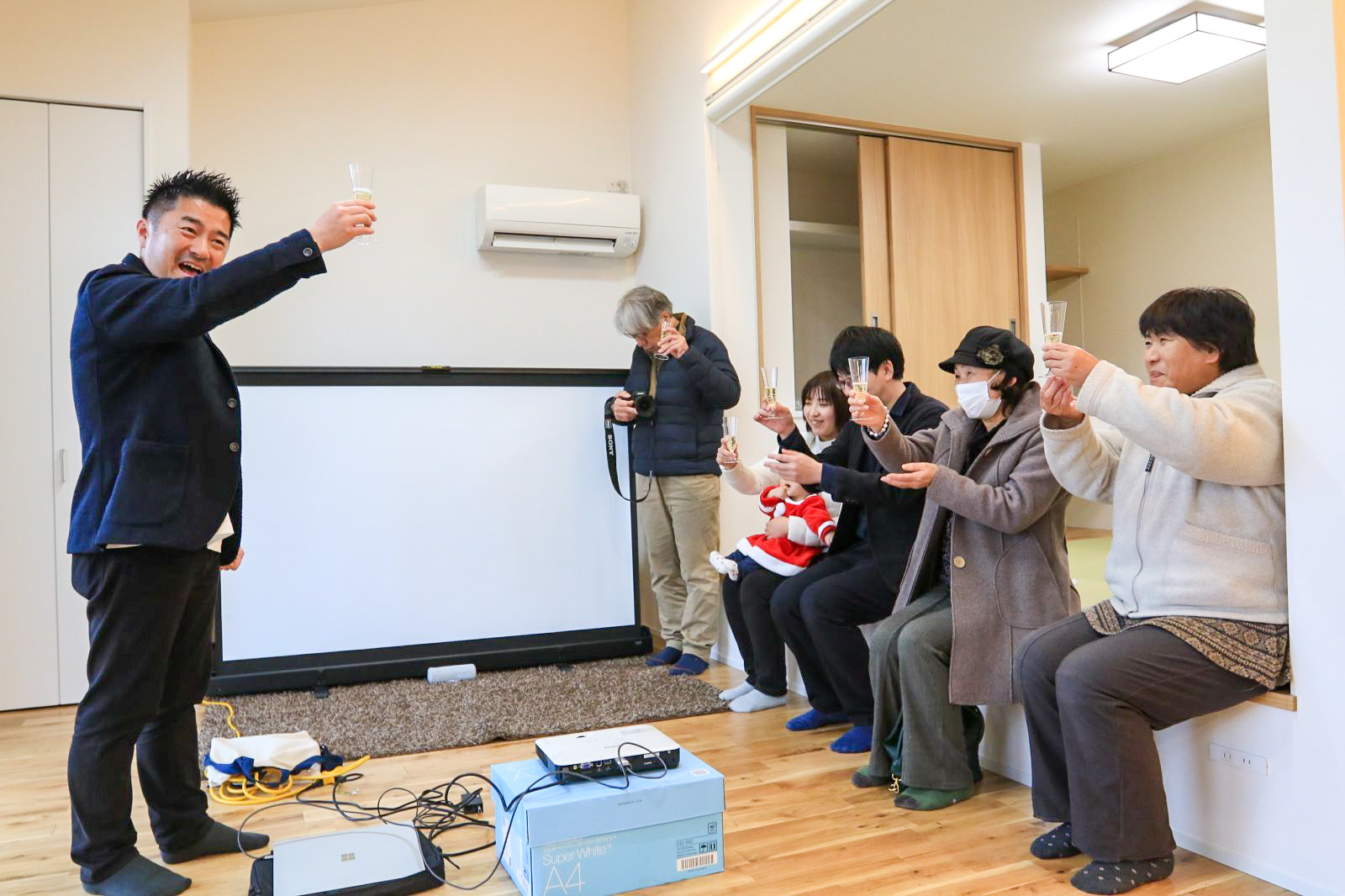 K様にご承諾を得て、お家の中で乾杯のセレモニーをさせていただきました🥂K様、本日はおめでとうございます!!