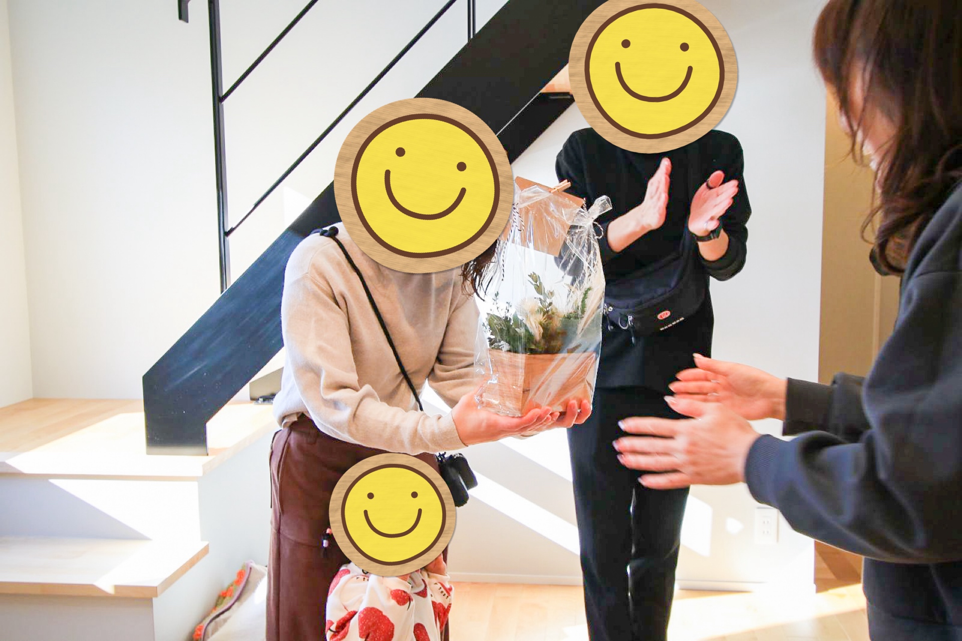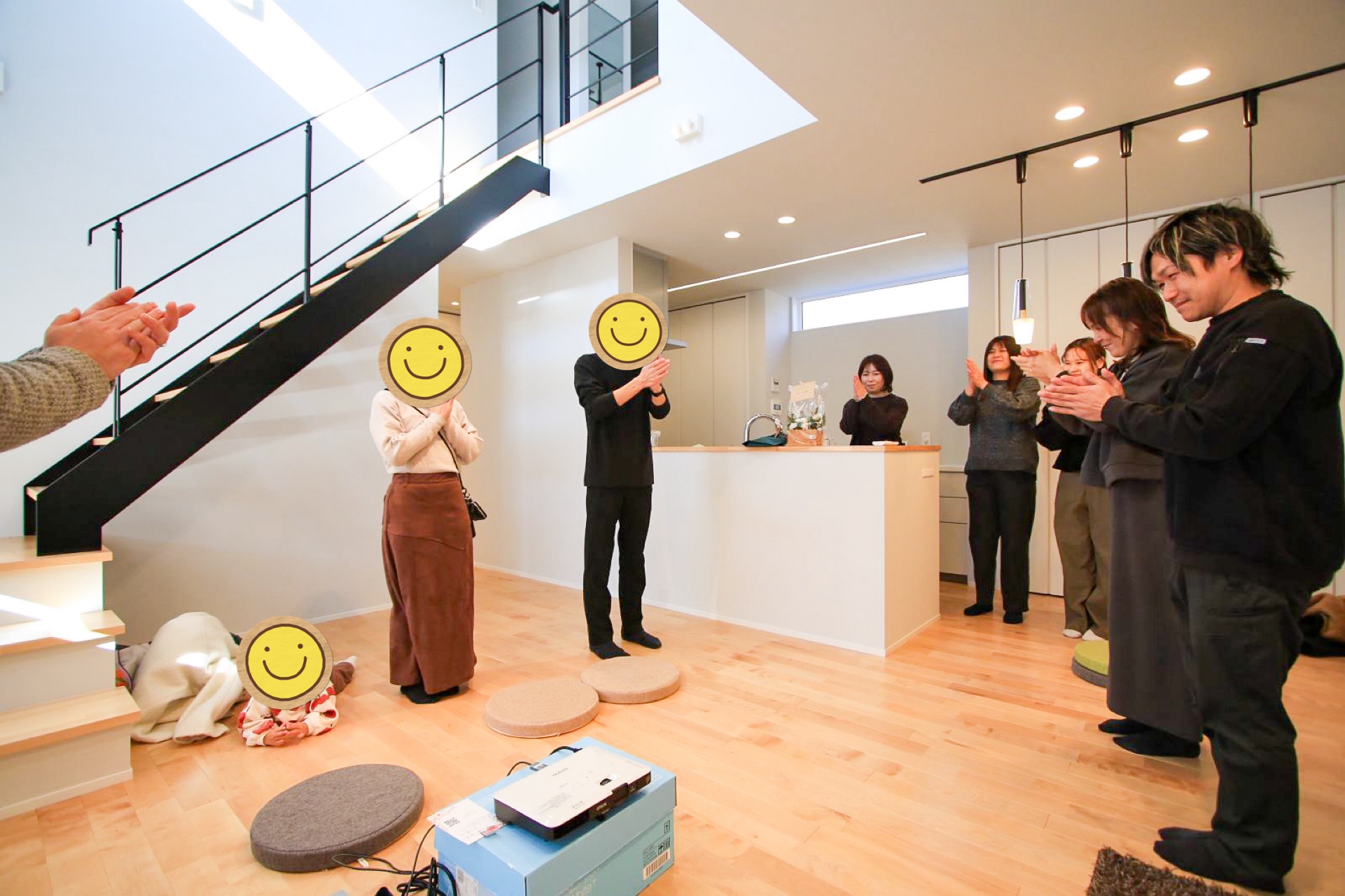 浅美設計士、古畑監督、担当アドバイザーでもある吉田からそれぞれお祝いの言葉をお贈りさせていただき、最後にI様からも御礼のお言葉をいただきました。一人ひとりに温かいお言葉をいただき、「木楽ホームさんに頼めて良かった」とお話いただきました、I様ありがとうございます!