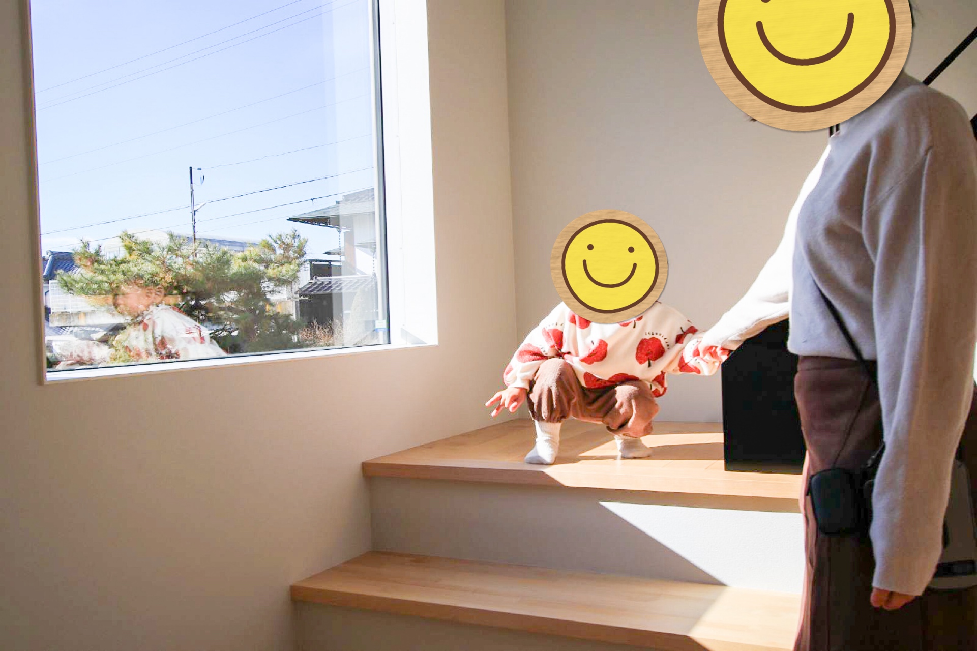 窓からたっぷり日差しが注ぐ、L字のリビング階段がお気に入り。