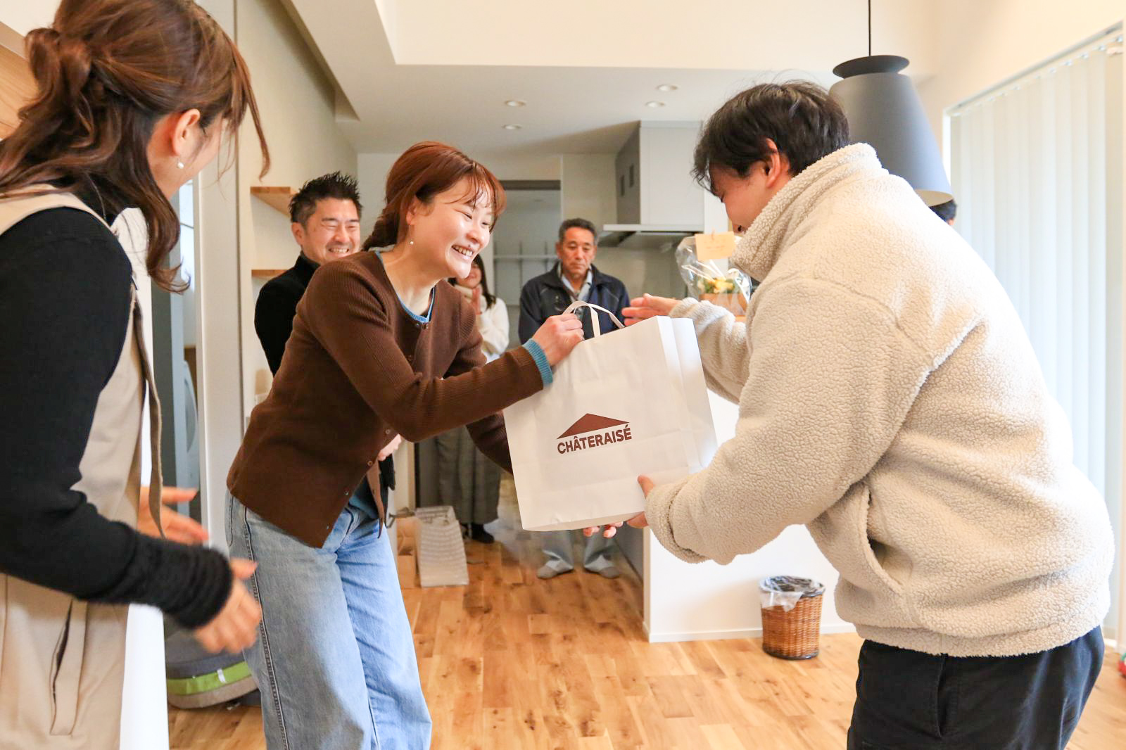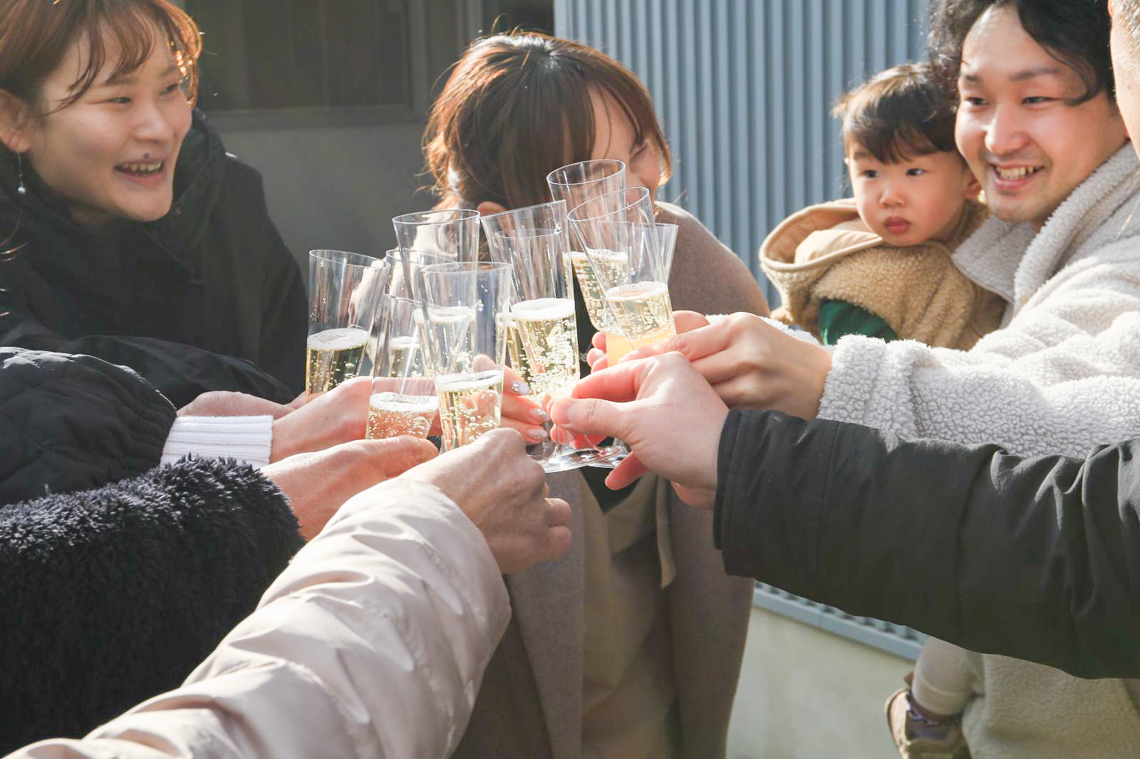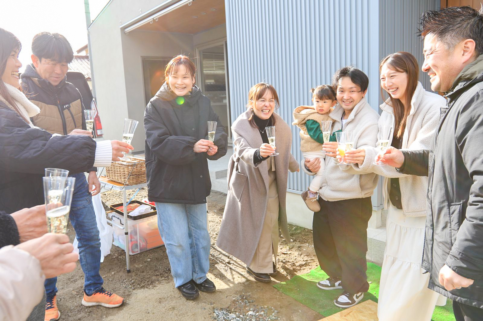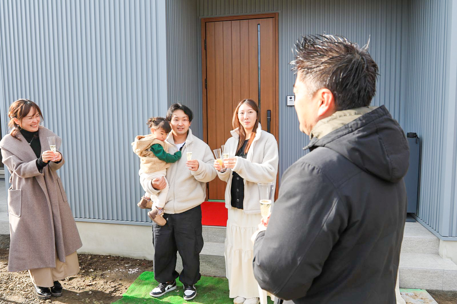 浅美設計士のお祝いの言葉のあと、皆でお引渡しを祝して乾杯をしました🥂