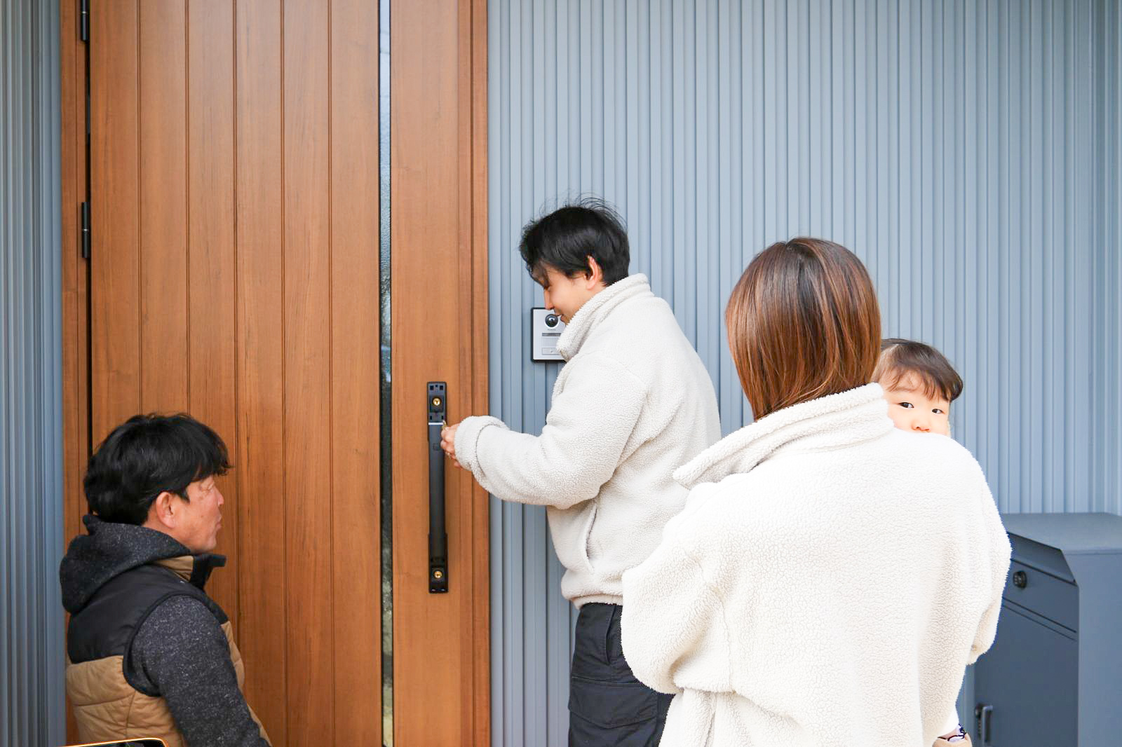 監督の谷口より、鍵の説明をさせていただいた後、「お客さん」となった木楽ホームが家の中へ「お邪魔させていただきました」