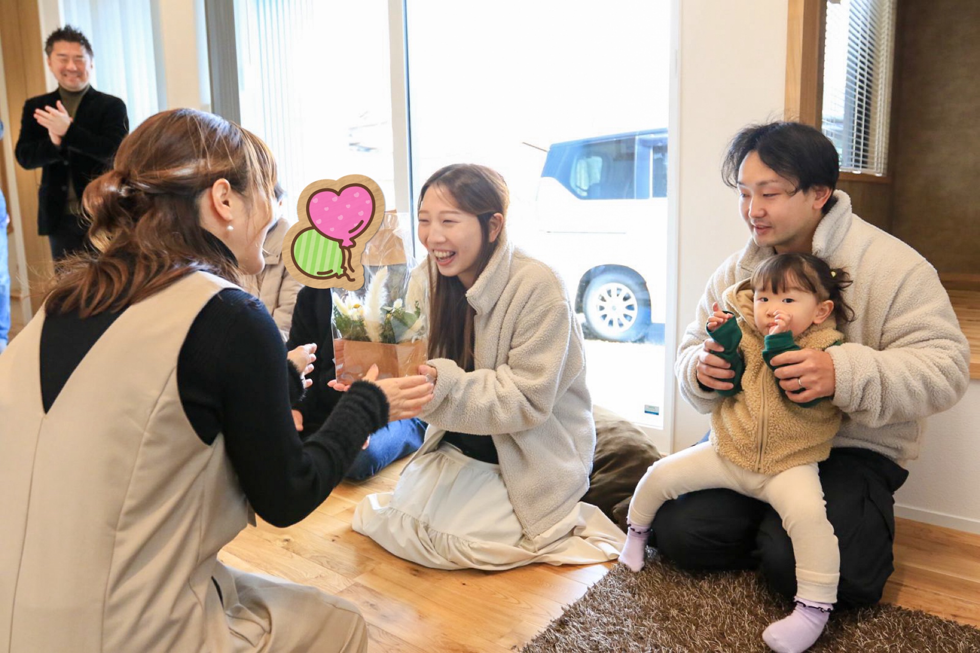 そして、スタッフと一緒にK様と記念撮影。すやすやと眠ってしまったUちゃんとみんな揃ってパチリ!📷この度はお引渡しおめでとうございました!!