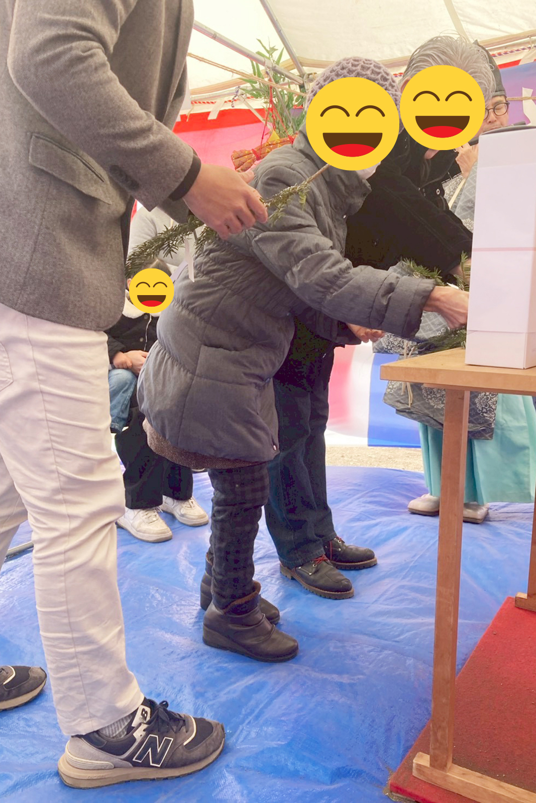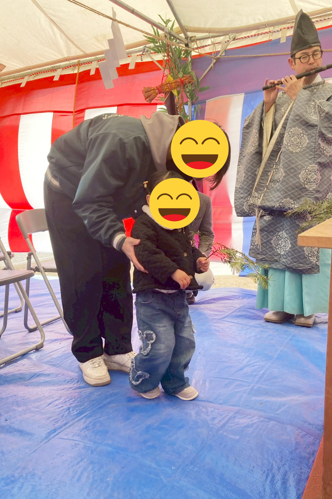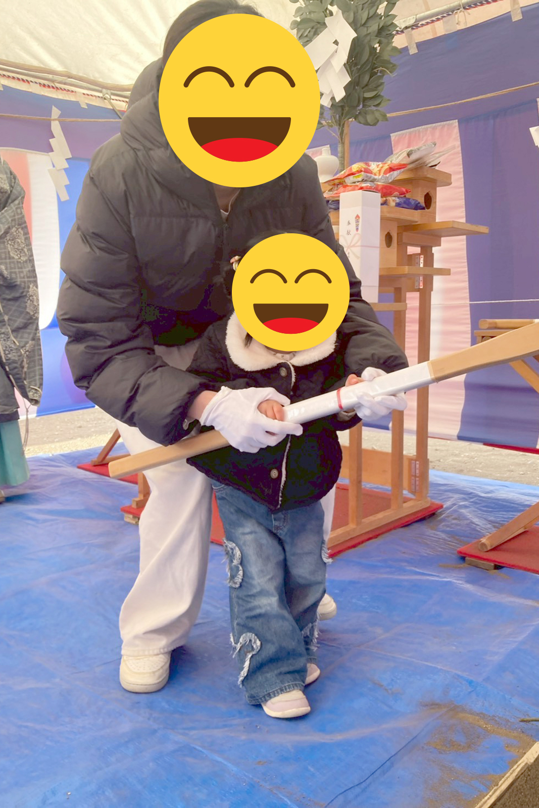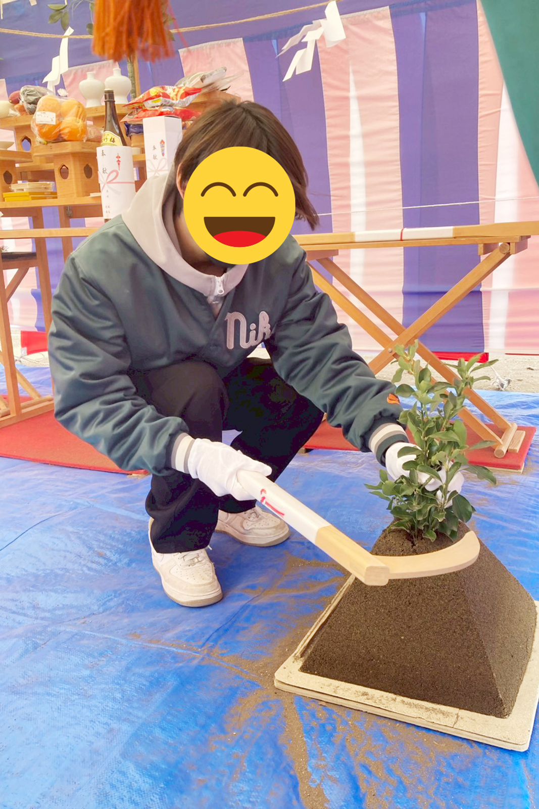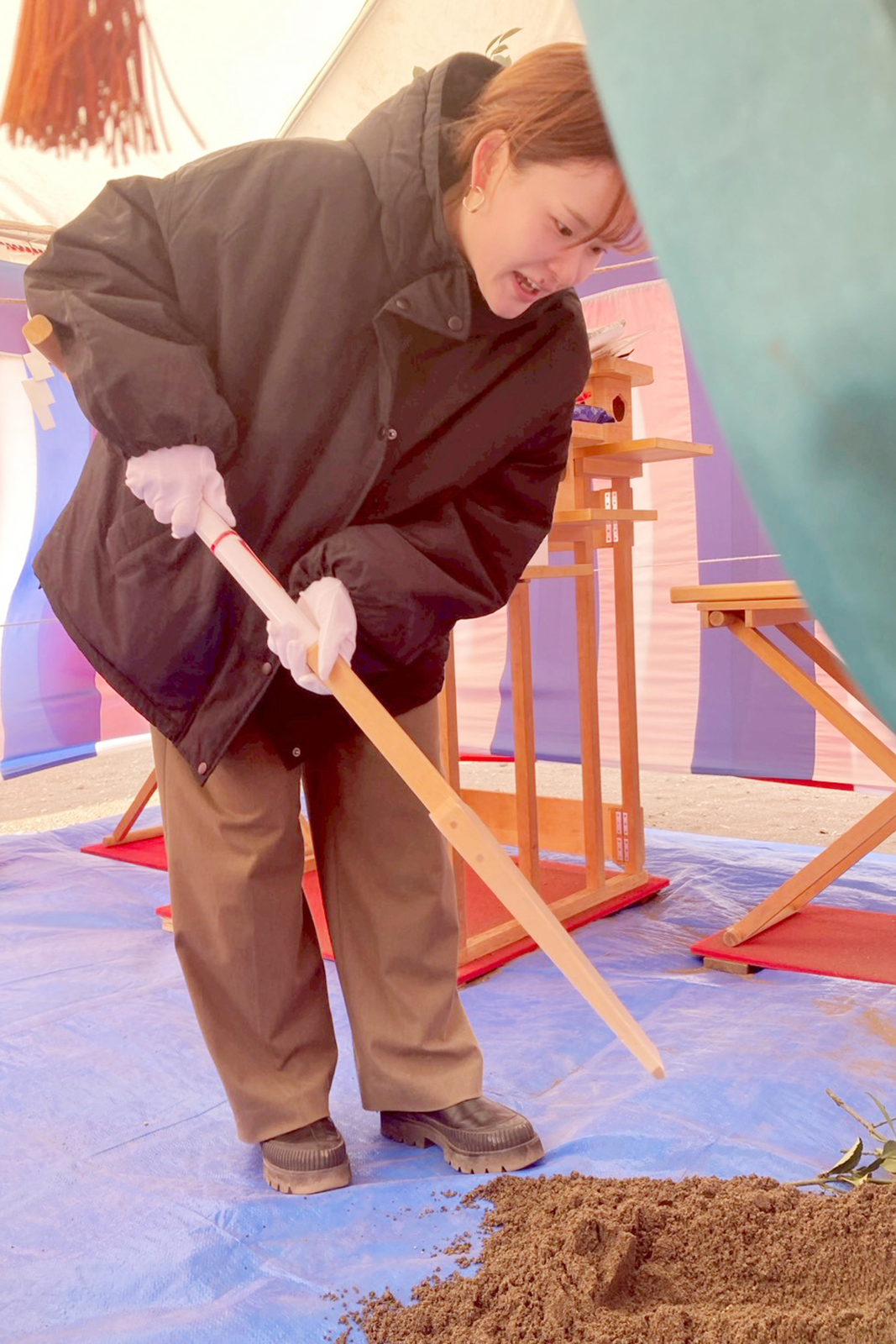 刈初めの儀(かりそめのぎ)をご主人様、穿初めの儀(うがちぞめのぎ)を奥様、お子様☺️鋤入れの儀を担当コーディネーターの富井が行いました。