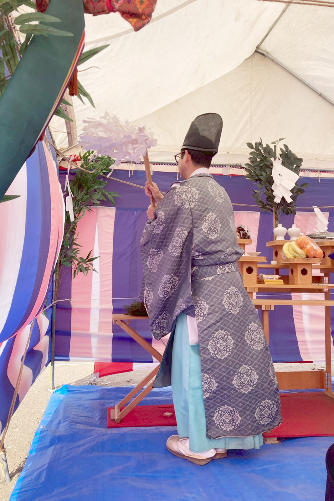 神主さんに敷地の四隅(東西南北)を清めて、土地を守る神様にご報告・ご挨拶をするお祓いを行っていただきます。
