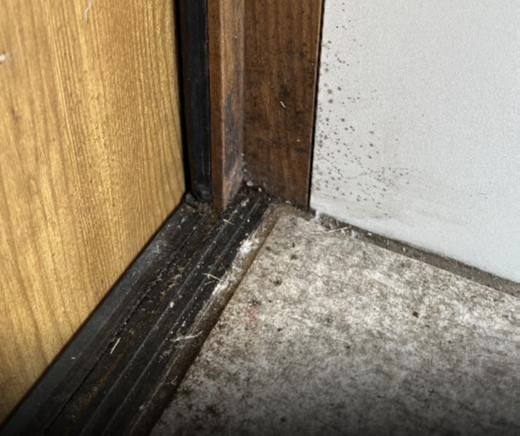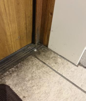 窓のレール、玄関のタイル、ドアの下部…。